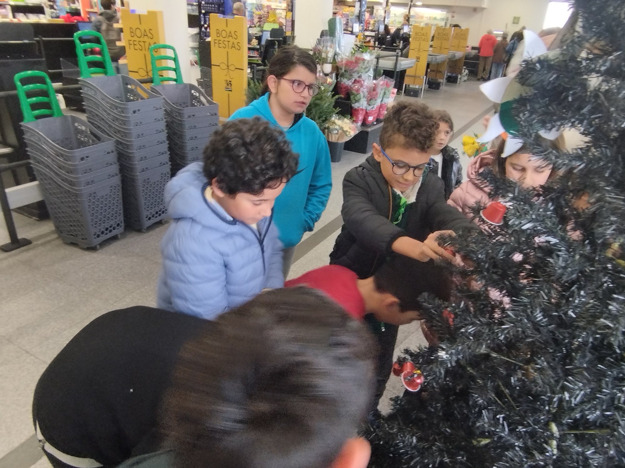 No passado dia 9 de dezembro, os alunos do 1.º, 2.º, 3.º e 4.º ano da Escola da Sr.ª da Glória deslocaram-se ao Pingo Doce situado perto da escola para enfeitarem a árvore de Natal. Os adornos utilizados foram trabalhos realizados pelos próprios alunos, feitos com materiais reciclados, promovendo a criatividade, a sustentabilidade e o espírito natalício.