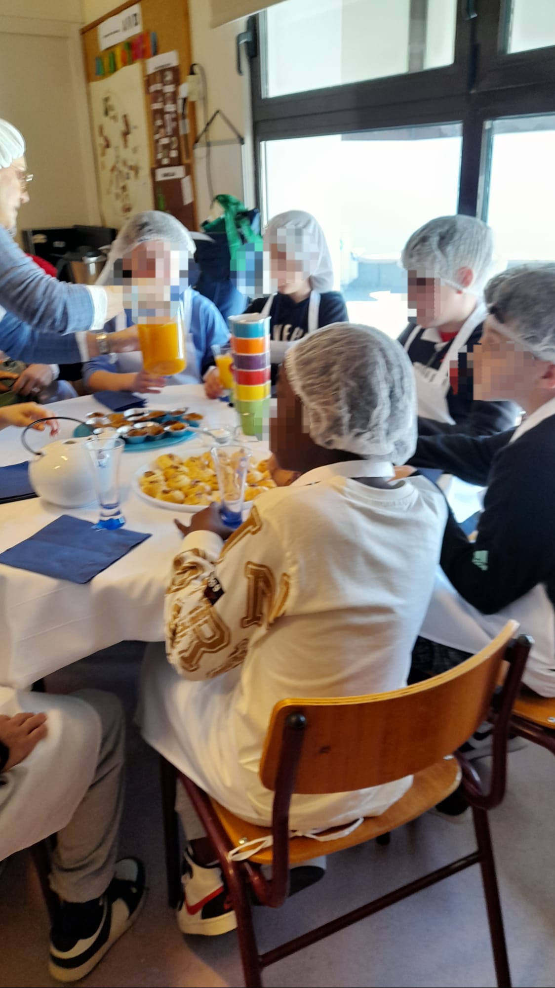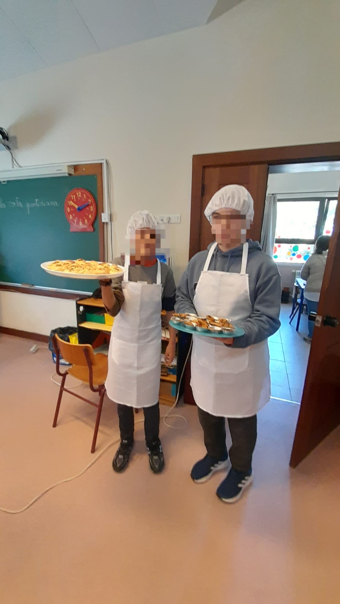 Durante a visita, os alunos de AVD partilharam com os colegas italianos a preparação de uma receita tradicional da região de Évora — as queijadinhas de requeijão — ensinando, passo a passo, a confeção deste doce típico. Os alunos italianos mostraram-se muito entusiasmados por “pôr as mãos na massa” e participar ativamente na elaboração de diferentes receitas, tendo depois apreciado e saboreado, também a sopa e muffins de cogumelos e espinafres, provaram ainda biscoitos e arroz doce, num agradável momento de convívio acompanhado por chá e sumo. As receitas de culinária foram também partilhadas por escrito, em português e em italiano, promovendo a valorização das duas línguas e culturas.